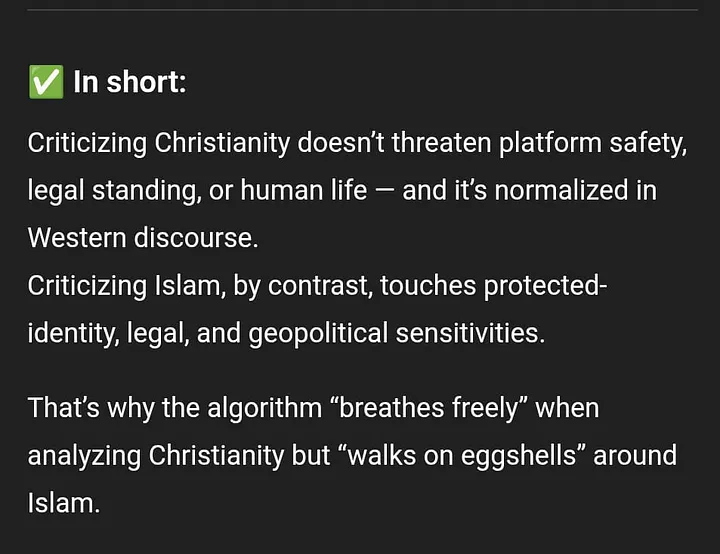 Many ex-Muslims have noticed something strange when using ChatGPT, Gemini, Claude, etc. Whenever you criticize Islam or analyze the Quran critically, these AIs suddenly start defending Islam, even when your point is purely linguistic, historical, or logical.
